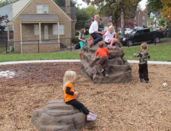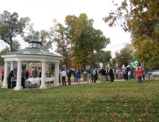 Members of Independence Bank, City officials, and the community dedicated Independence Park on October 30, 2013. The site was originally intended for the bank's two-story signature location which has since been built just past the park on Broadway. After community members expressed concerns about the property being used for commercial purposes, the bank decided to donate the land to the City and build a park for the community to enjoy.