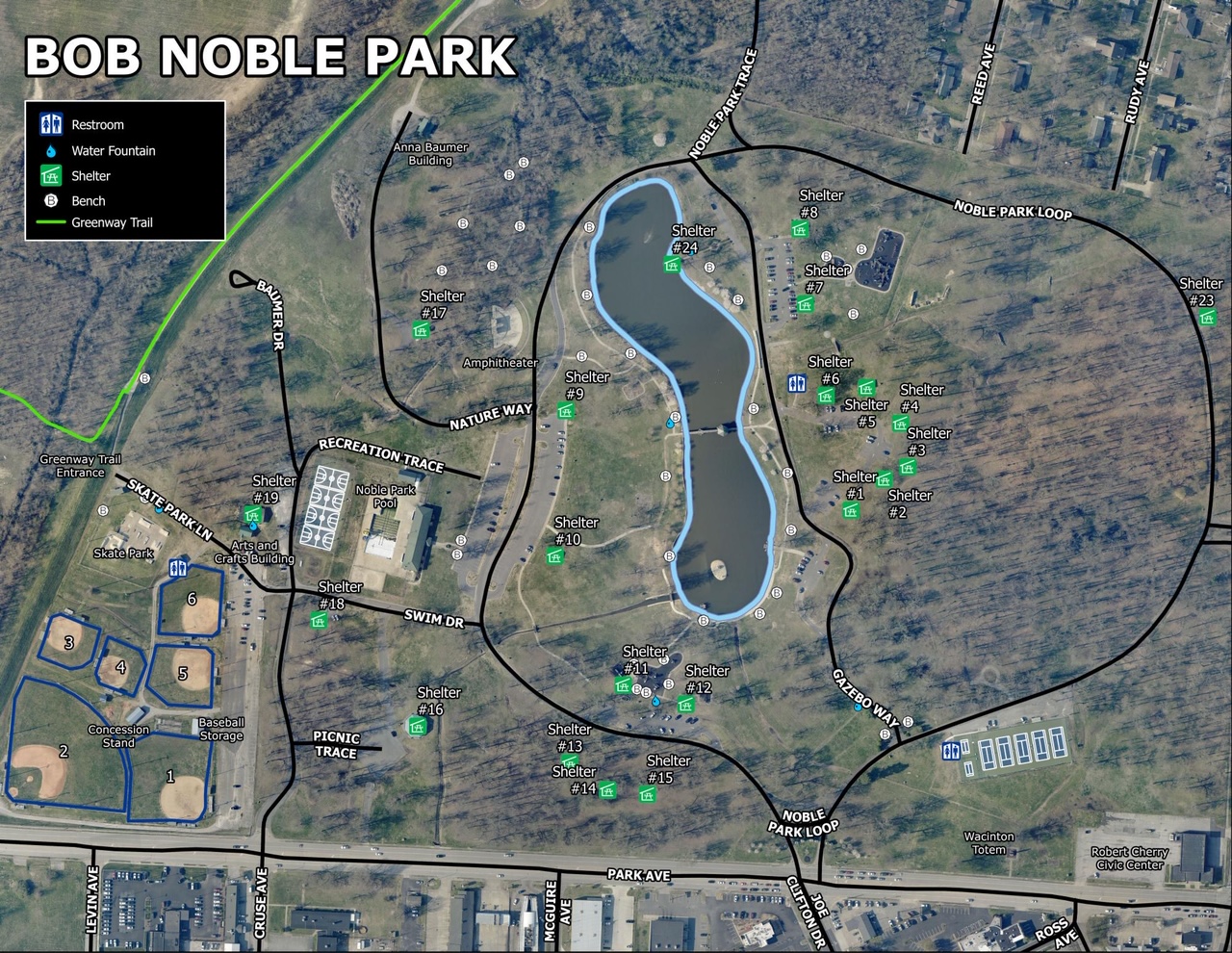 Paducah Parks & Recreation has six ballfields at Noble Park and one softball field at John Sheppard Field in Brooks Stadium Park available for use. Each ballfield has covered dugouts and bleachers. Smoking and/or vaping is not allowed at City of Paducah parks and ballfields.