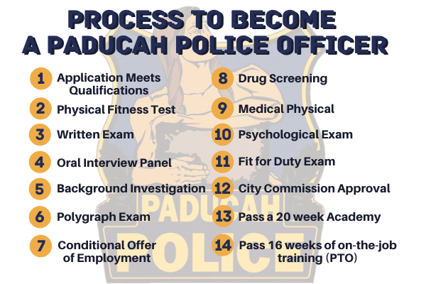 Hopefully, after a comprehensive review of your application file, you will now be among those eligible finalists to be selected as Paducah Police Officer Recruits.